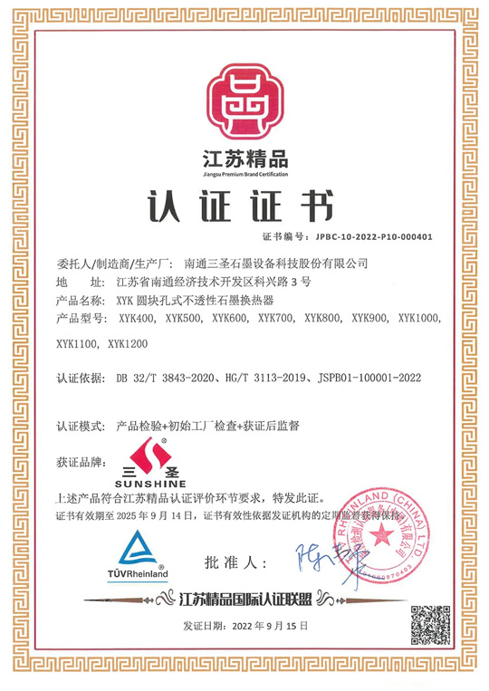 優(yōu)質產品是企業(yè)的核心,公司石墨設備標準化建設獲得“江蘇省戰(zhàn)略性新興產業(yè)標準化試點項目”。產品標準化夯實質量品牌發(fā)展,公司被列入江蘇"旗艦領航”重點培育計劃。