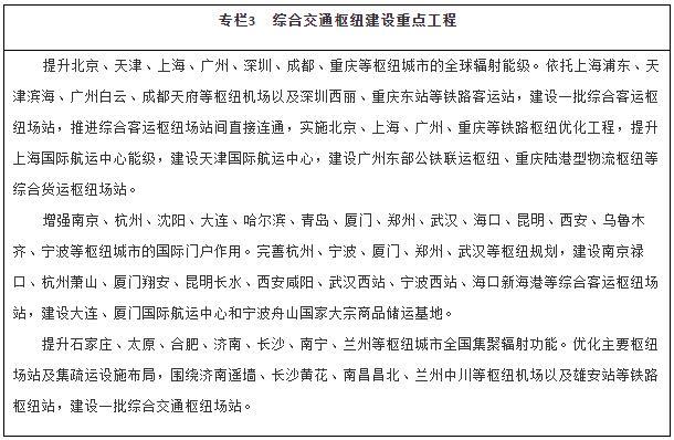 優(yōu)化綜合交通樞紐城市功能。提升國際性綜合交通樞紐的全球聯(lián)通水平和資源要素配置能力,增強部分樞紐國際門戶功能。優(yōu)化全國性綜合交通樞紐客貨中轉(zhuǎn)設施、集疏運網(wǎng)絡及客運場站間快速連接系統(tǒng)。增強區(qū)域性綜合交通樞紐的銜接轉(zhuǎn)運能力,發(fā)展口岸樞紐。強化不同層級綜合交通樞紐城市之間功能互補、設施連通、運行協(xié)同。