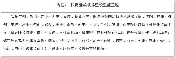 擴大航空網(wǎng)絡覆蓋。推動區(qū)域機場群協(xié)同發(fā)展,建設京津冀、長三角、粵港澳大灣區(qū)、成渝等世界級機場群。適時啟動能力緊張樞紐機場改擴建工程,強化樞紐機場綜合保障能力。合理加密機場布局,穩(wěn)步建設支線機場和專業(yè)性貨運樞紐機場,提升綜合性機場貨運能力和利用率。有序推進通用機場規(guī)劃建設,構建區(qū)域短途運輸網(wǎng)絡,探索通用航空與低空旅游、應急救援、醫(yī)療救護、警務航空等融合發(fā)展。優(yōu)化航路航線網(wǎng)絡,加強軍民航空管基礎設施建設,推廣應用空管新技術。