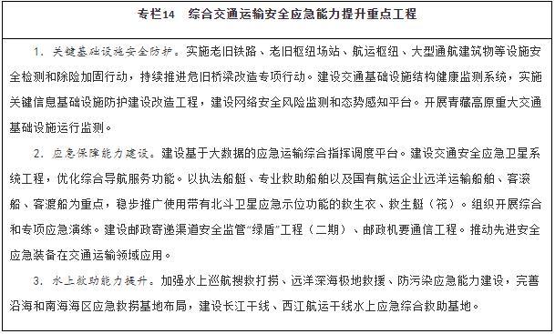 健全綜合交通運輸應急管理體制機制,完善應急協(xié)調(diào)機制和應急預案體系,加強交通運輸調(diào)度與應急指揮平臺建設。推進區(qū)域性公路應急裝備物資儲備中心建設。加強水上交通安全監(jiān)管、航海保障和救助打撈能力建設,完善沿海和內(nèi)河溢油應急設備庫,構建陸海空天一體化水上交通運輸安全保障體系。建設城市軌道交通應急演練中心。以骨干航空物流企業(yè)為主體構建航空應急服務網(wǎng)絡。建設海事監(jiān)管指揮系統(tǒng)。在開展城市交通基礎設施地下空間、低洼區(qū)域、重點區(qū)段、重要點位、關鍵設施等隱患排查基礎上,建立健全風險臺賬和災害隱患清單,補齊設施設備、應急搶險物資等短板,持續(xù)完善應急處置預案,健全應急響應機制,提升應對極端天氣能力。加強應急專業(yè)隊伍和志愿者隊伍建設,充實國家應急運輸儲備力量。健全應對重大疫情、防范應對恐怖襲擊、保障信息安全等非傳統(tǒng)安全應急指揮體系和應急交通組織。
