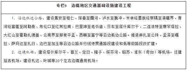 服務沿邊城鎮(zhèn)體系建設,以公路、機場為重點,大力改善邊境地區(qū)交通出行條件,提升邊境城鎮(zhèn)人口集聚能力。統(tǒng)籌推進邊境地區(qū)國省干線公路、農(nóng)村公路等建設,全面完善國道干線主骨架,推進沿邊公路并行線建設和低等級公路提質(zhì)改造,加快抵邊公路建設,盡快形成層次清晰、結構合理的沿邊公路網(wǎng)。穩(wěn)步推進邊境地區(qū)機場建設,構建多層級航空網(wǎng),擴大航空運輸服務覆蓋面。補強同江、二連浩特、阿拉山口、霍爾果斯、瑞麗、磨憨等口岸后方鐵路通道能力。加強抵邊自然村郵政設施建設,實現(xiàn)郵政服務普遍覆蓋。