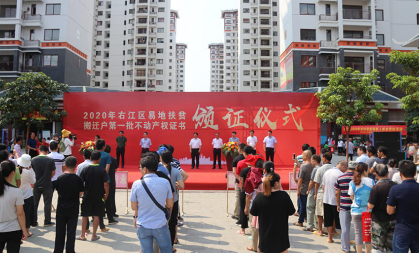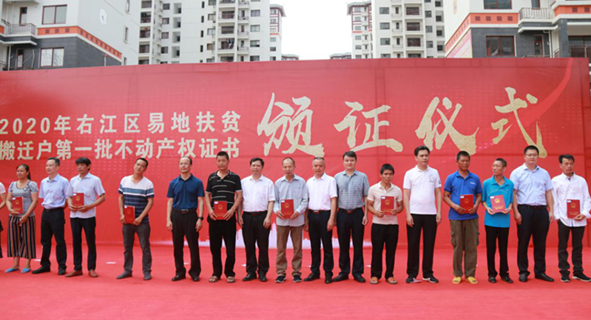 右江區(qū)“老鄉(xiāng)家園—迎龍易地扶貧搬遷安置小鎮(zhèn)”第一批不動產(chǎn)權(quán)證書順利發(fā)放